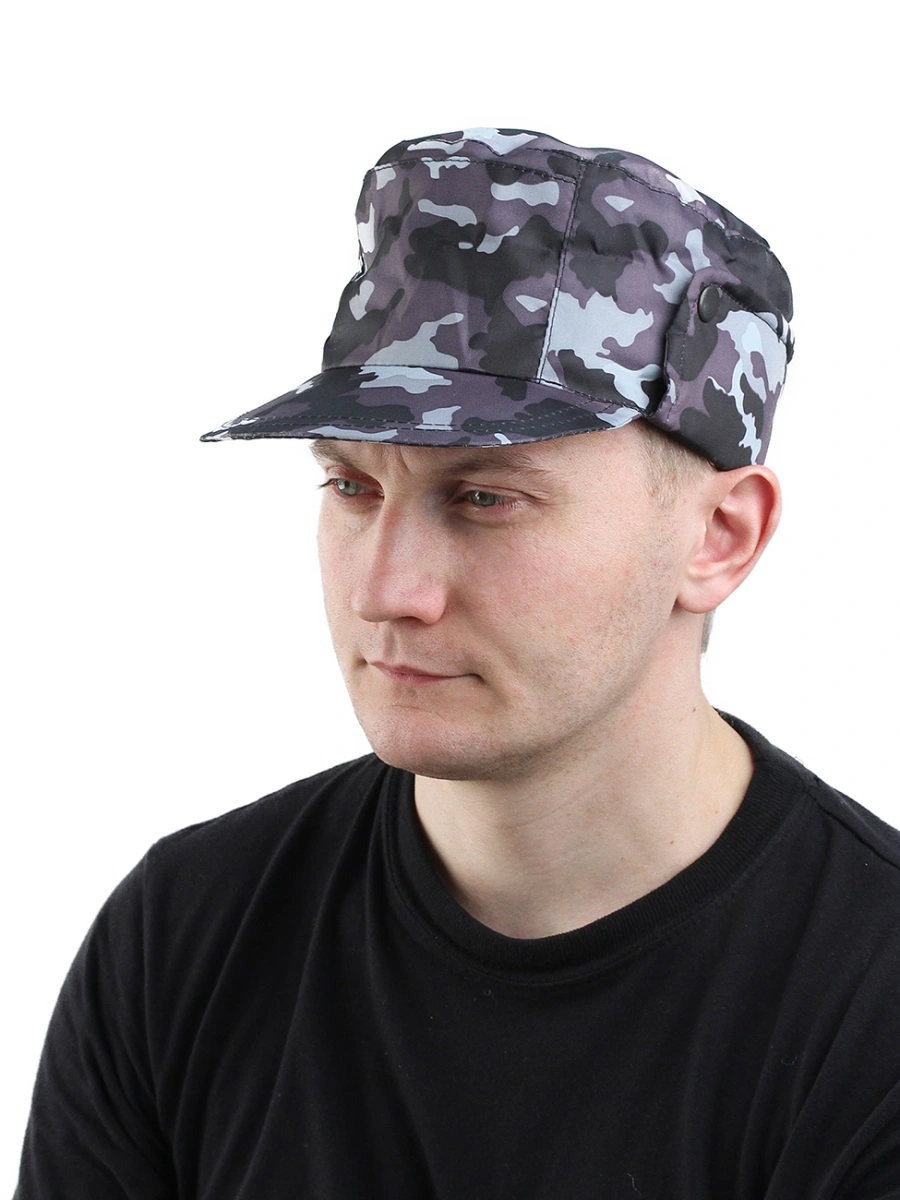 Кепка с отворотами, пристегивающимися на кнопки, с отделением на тулье.