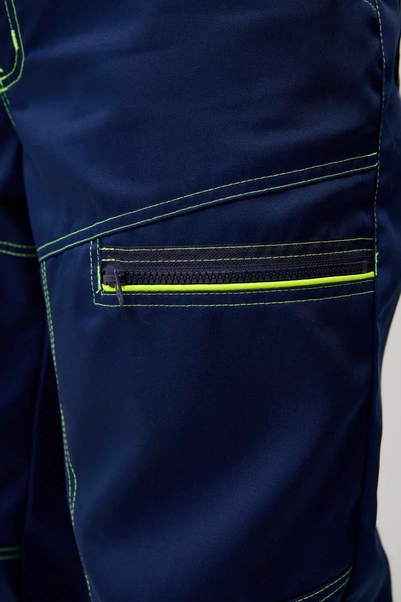 - лимонный светоотражающий кант вдоль молний нижних карманов и нижней отрезной части задней половинки брюк