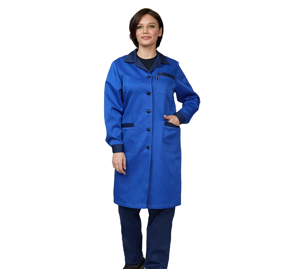 Халат женский "Универсальный" василёк/тёмно-синий эконом