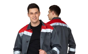 Костюм мужской "Пантеон СОП" тёмно-серый/красный (куртка и брюки)