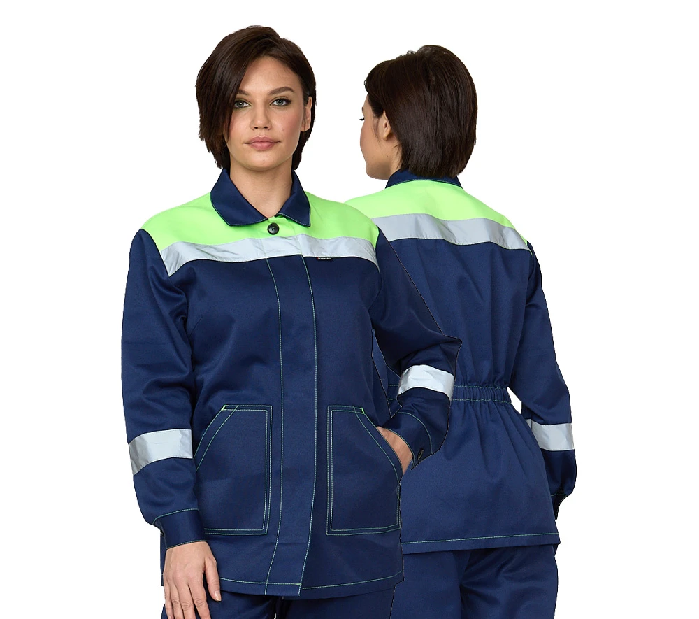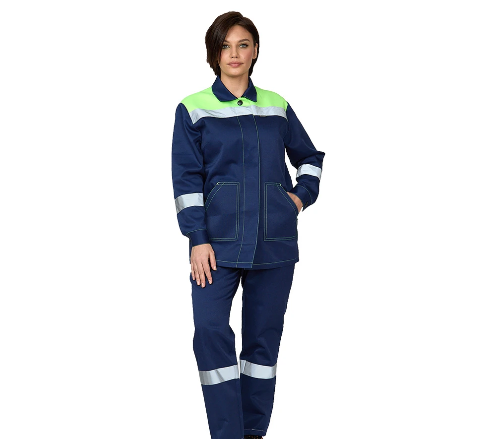 Костюм женский "Пантеон" синий/лимонный (куртка и брюки)