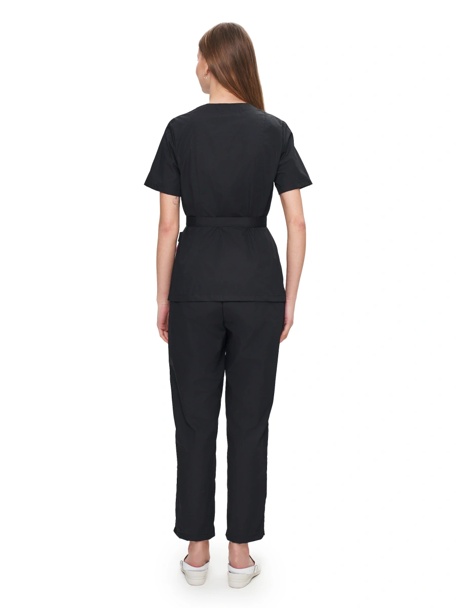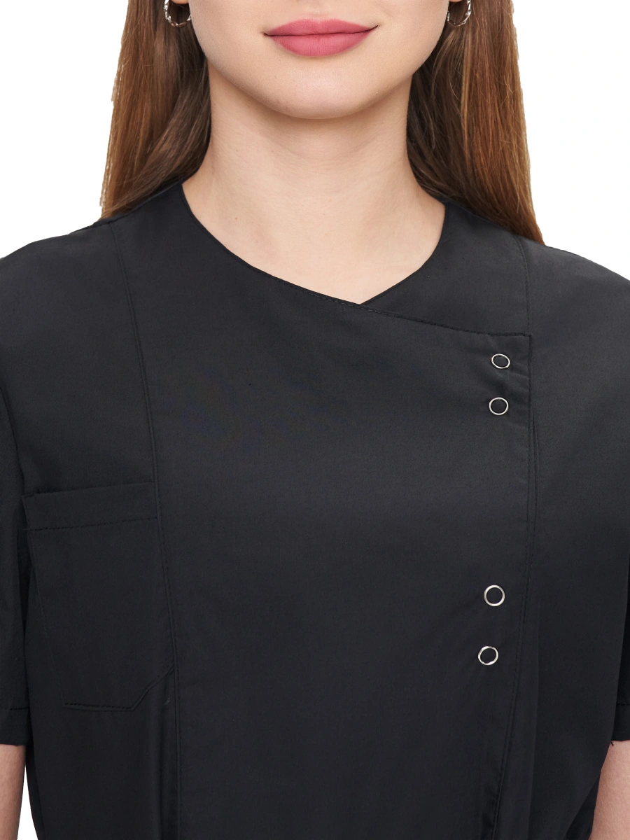 Современный, стильный, легкий и удобный женский костюм со свободной посадкой, рекомендован для сферы косметологии и работников медицинских учреждений из высококачественной смесовой ткани прекрасно переносят многократные стирки и выглядят презентабельно даже при длительных сроках эксплуатации. Широкий размерный ряд продукции позволит без труда подобрать костюм правильно по фигуре, в соответствии со спецификой профессии и с учетом индивидуальных требований сотрудника. Костюм женский «Юмелия» для косметологов и медработников прост в уходе, не мнется и быстро сохнет, а материал долгое время сохранит свой первоначальный яркий цвет. Костюм состоит из блузы и брюк приятного черного цвета. Сегодня современная мода вмешивается не только в подиумные и уличные образы. Она диктует свои правила разным сферам жизни, в том числе в сфере косметологии и медицине. Костюм состоит из прочной смесовой ткани ТИСИ, отталкивающей различного рода загрязнения. Материал устойчив к пятнам и истиранию, тем самым косметологи и медработники всегда будут выглядеть опрятно и привлекательно.