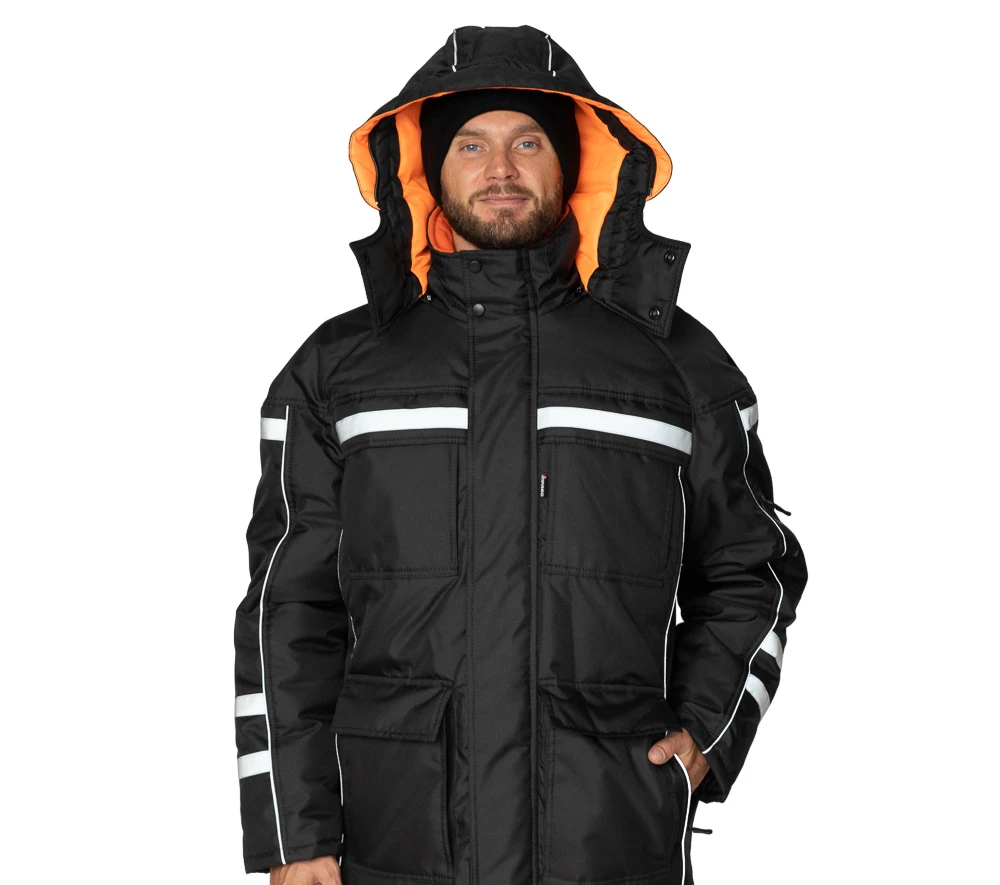 синтепон: куртка 360 г/м² (3 слоя х 120 г/м²), рукава, капюшон 240 г/м² (2 слоя х 120 г/м²)