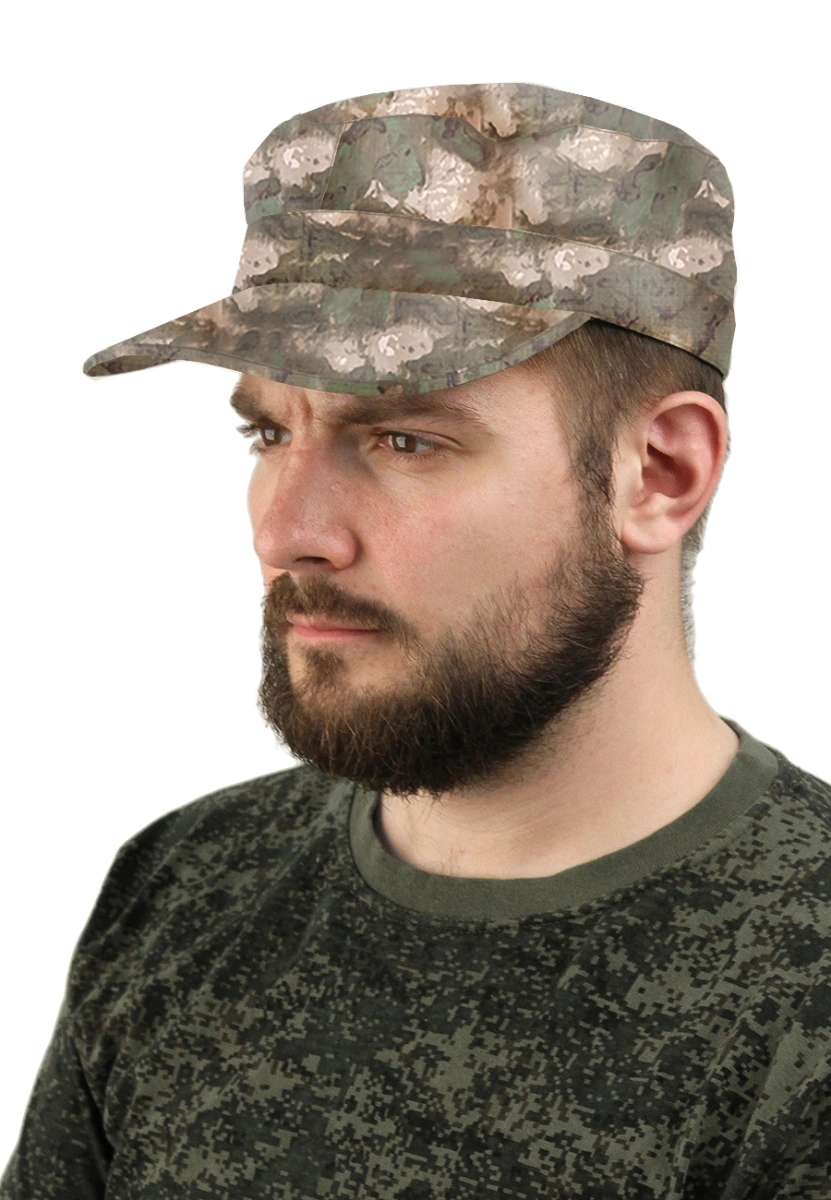 Кепка с камуфляжным принтом предназначена для туризма и отдыха, а так же позволяет маскироваться на фоне пейзажа. Широкий жесткий козырек защищает от различных климатических условий. Объем регулируется с помощью пластиковой пряжки в затылочной части.