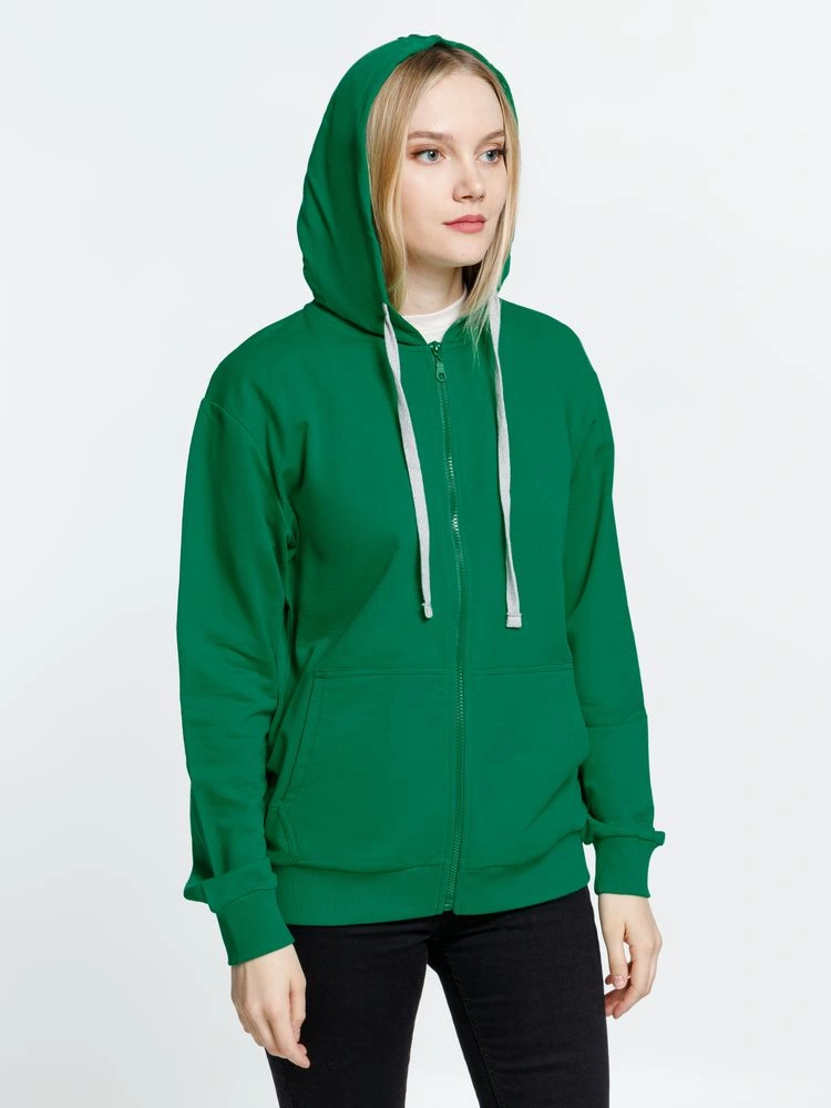 Базовая толстовка унисекс на молнии и с капюшоном.Капюшон на подкладкеМолния в тон изделияДва передних карманаМанжеты и низ изделия выполнены резинкой 2х2Утягивающий шнур серого цвета в капюшонеВ шве горловины только бирка с размеромВнутренняя сторона без начеса