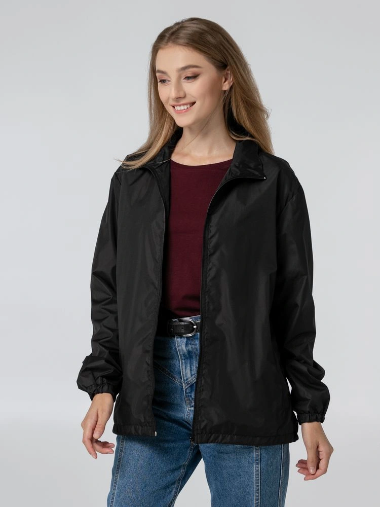 Ветровка на молнии без капюшонаВетронепродуваемая ткань с водоотталкивающей пропиткойГладкая подкладка из полиэстераВоротник-стойкаДва боковых кармана, утягивающий шнур по низу изделия, манжеты на резинкеДля удобства нанесения логотипа можно частично отстегнуть подкладкуПоставляется в пакете с липким краем.
