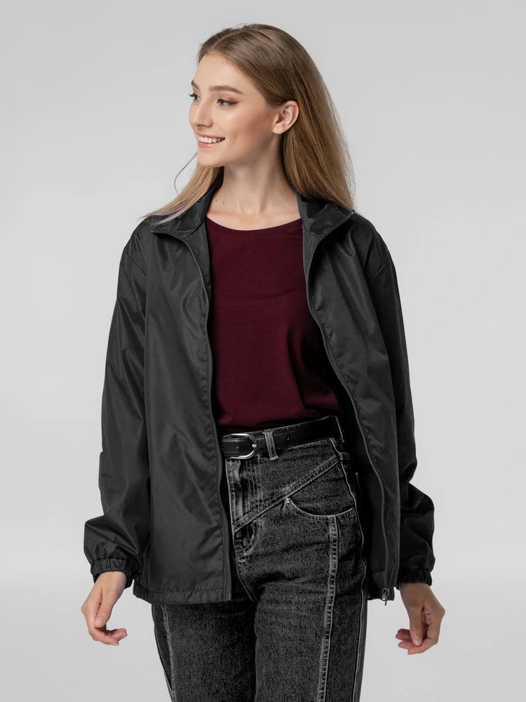 Ветровка на молнии без капюшонаВетронепродуваемая ткань с водоотталкивающей пропиткойГладкая подкладка из полиэстераВоротник-стойкаДва боковых кармана, утягивающий шнур по низу изделия, манжеты на резинкеДля удобства нанесения логотипа можно частично отстегнуть подкладкуПоставляется в пакете с липким краем.