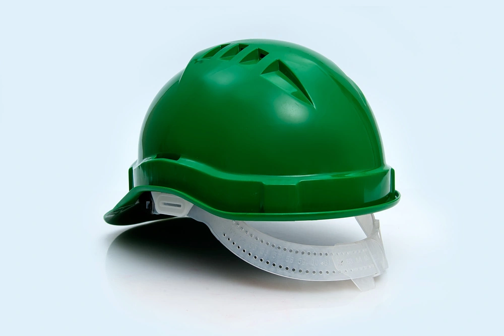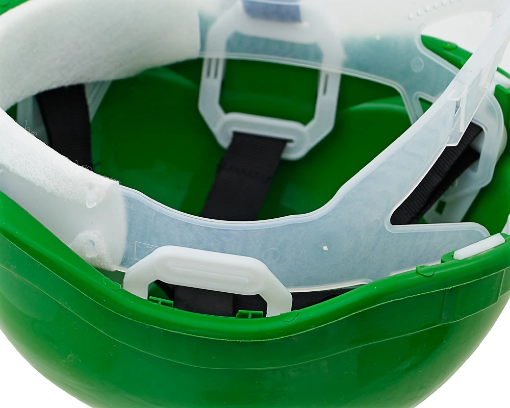 Каска защитная ЕЛАНПЛАСТ ЕВРОПА зеленая (ленточное оголовье).