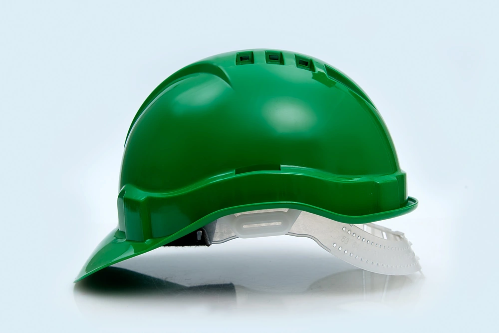 Каска защитная ЕЛАНПЛАСТ ЕВРОПА зеленая (ленточное оголовье)