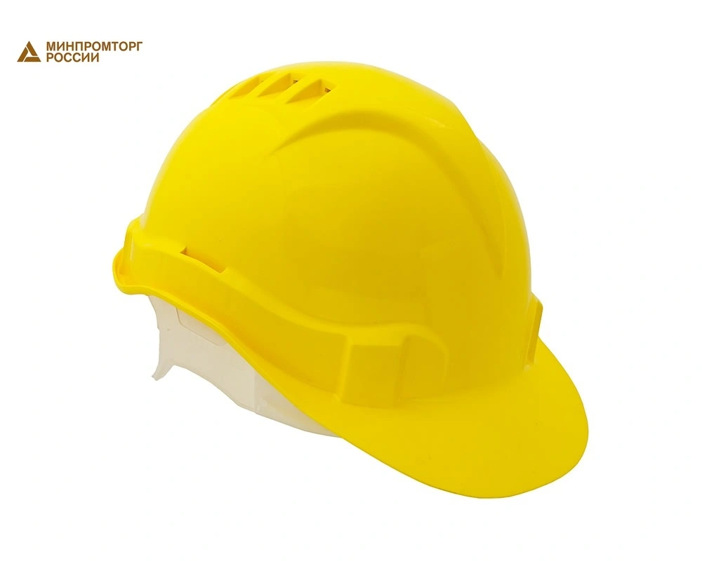 Каска защитная ЕЛАНПЛАСТ ЕВРОПА желтая (ленточное оголовье).