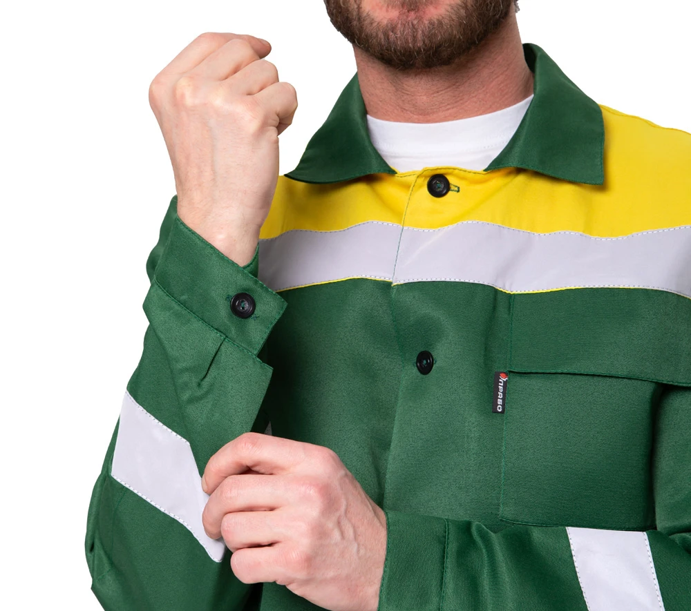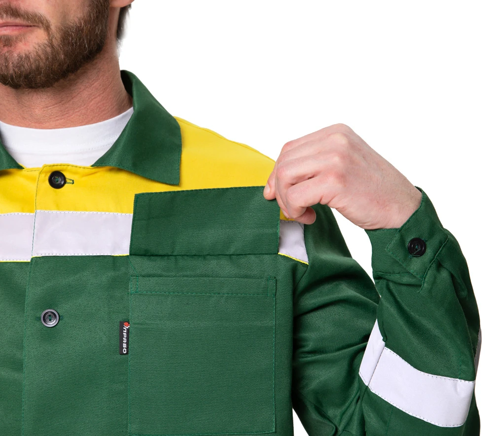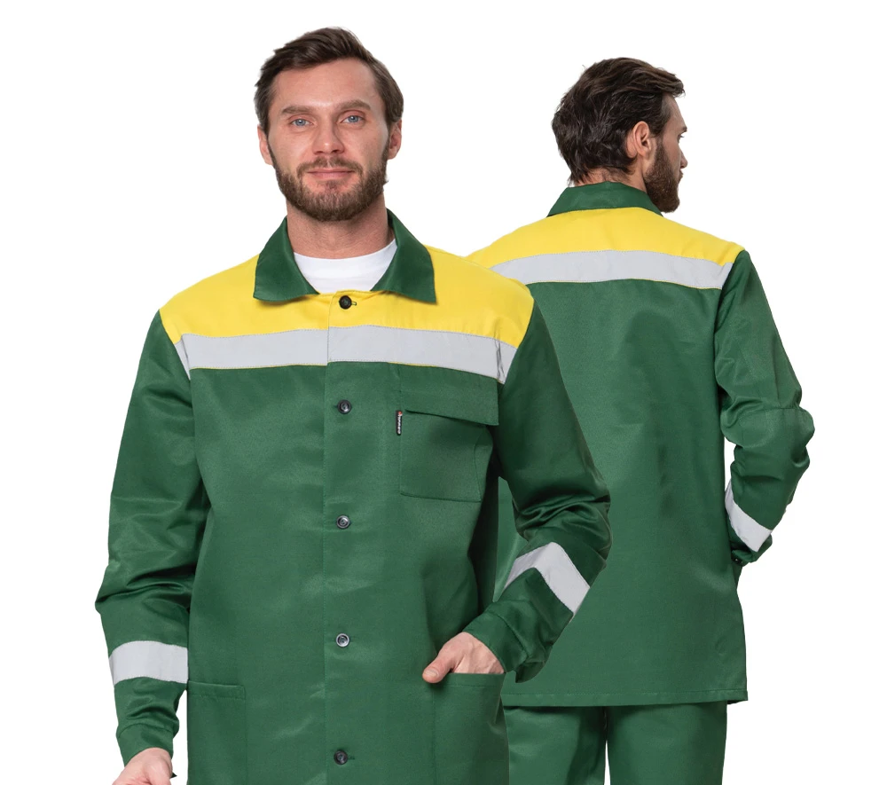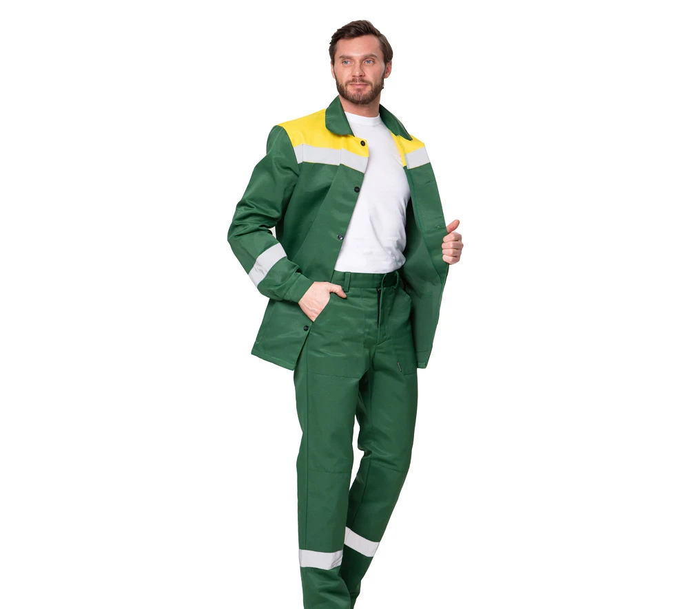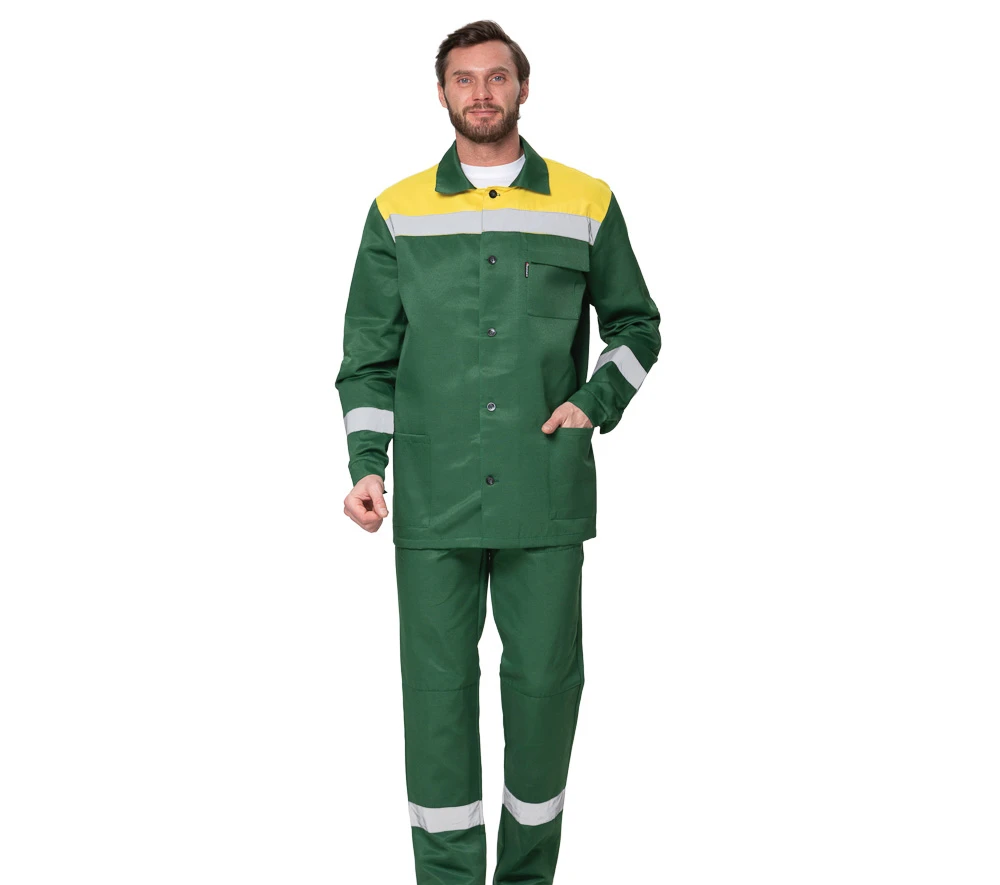 Костюм мужской летний "Стандарт 1 СОП" зелёный/жёлтый (куртка и брюки)