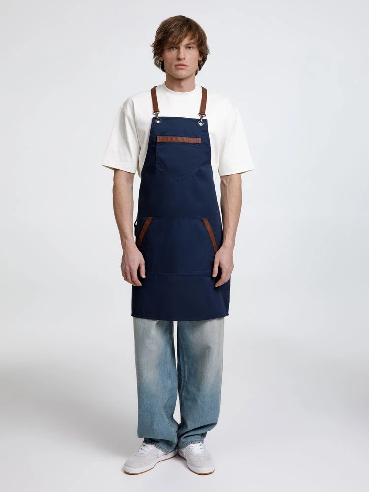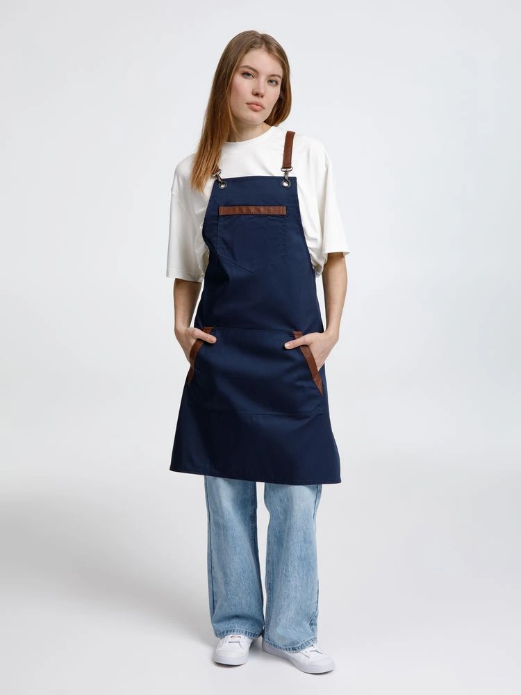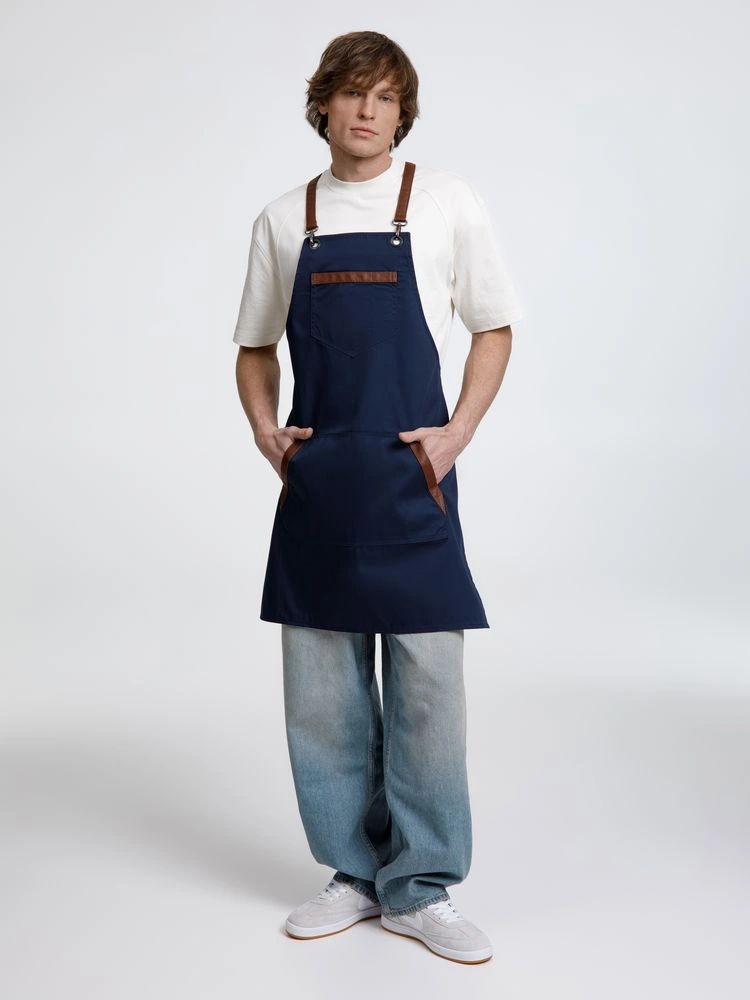 Универсальный фартук бармена, бариста, официанта. Может служить отличным подарком и для людей творческих профессий — художников или скульпторов — и всех, кто любит мастерить что-то своими руками.Функциональные карманы на груди и подоле эффектно украшают фартук, изготовленный из качественной дышащей плотной износостойкой ткани. Благодаря динамичным крестообразным лямкам он отлично сидит как на мужской, так и на женской фигуре. Кроме того, съемные лямки упрощают процесс стирки в стиральной машине.