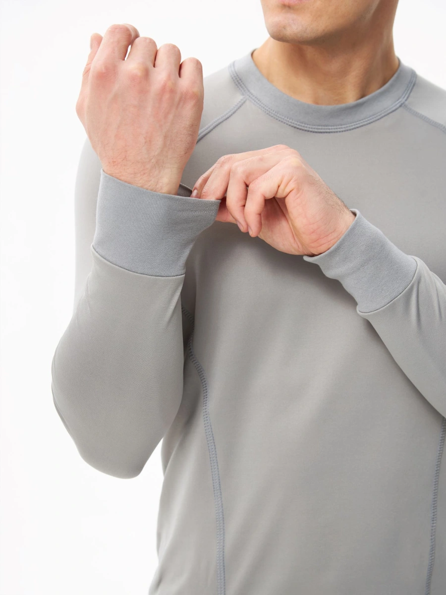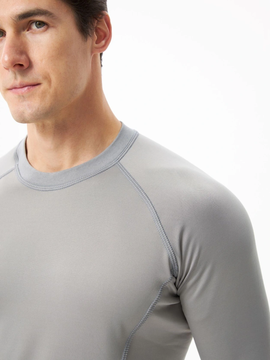 Анатомический облегающий крой максимально контактирует с поверхностью тела, активно отводя влагу в верхние слои одежды.