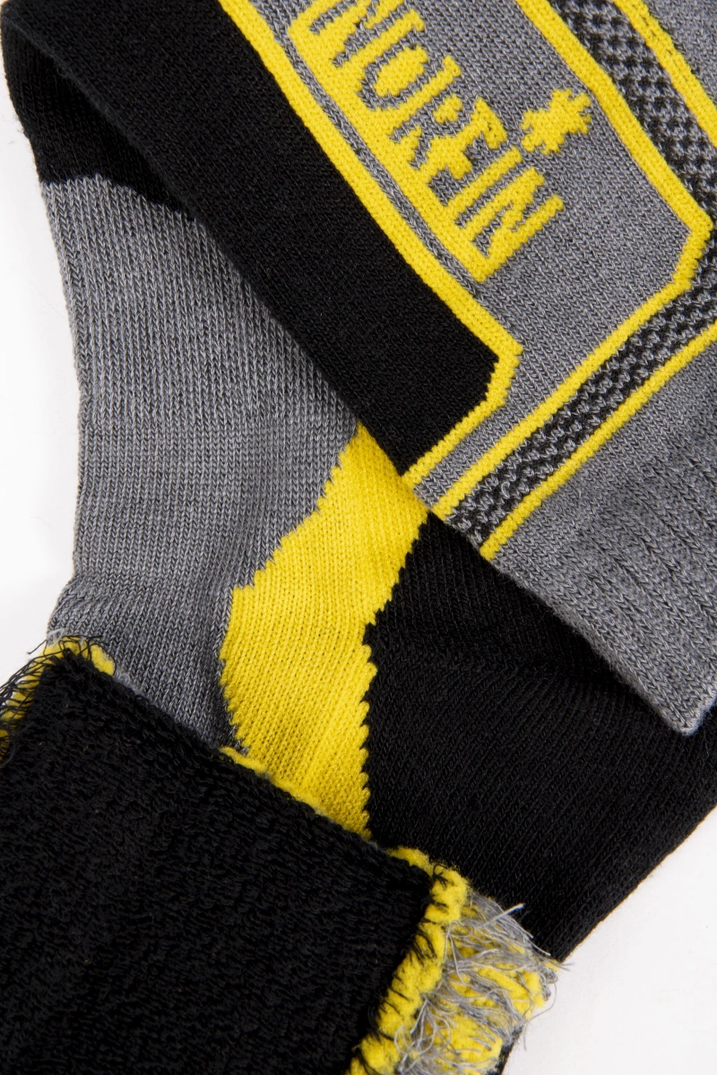 Специальная вязка обеспечивает идеальное прилегание и не позволяет носку сползти в обувь. Материал – сочетание акрила, полиэстра и эластана, благодаря чему, теплый воздух не уходит наружу, а создает теплую прослойку между ногой и носком, не позволяя холодному воздуху проникать внутрь. Особенная структура волокна быстро впитывает и выводит наружу влагу, оставляя ноги сухими и теплыми. Высокая износостойкость.