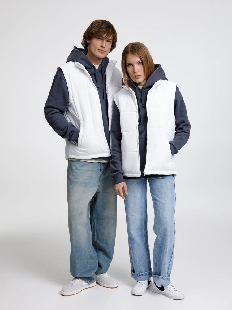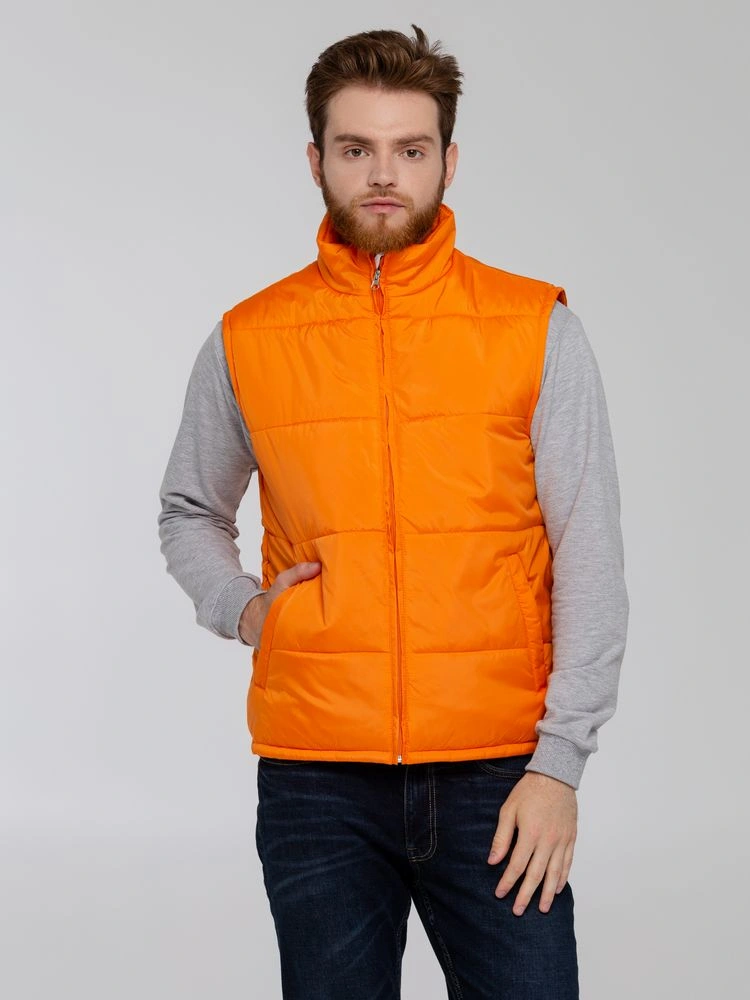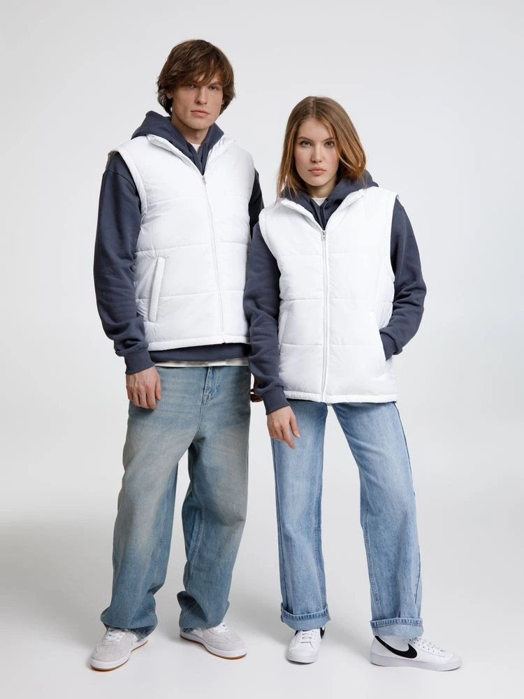 Утепленный жилет унисекс. Воротник-стойкаЭргономичная линия низа - удлинение на спинкуДва наружных кармана на молнии и один внутренний на липучкеЗастежка-молния в тон жилетаДля удобства нанесения логотипа по низу спинки со стороны подкладки имеется техническая молнияРассчитана на температуру до +10 °СЖилеты представлены в двух версиях. Версия 1 — Произведена в Китае, с более гладким материалом верха. Информация по составу и размеру, а также рекомендации по уходу размещены на ярлыке в боковом шве. Картонная бирка с названием модели крепится на петельку для подвешивания на горловине. Жилеты версии 2 выделены добавлением "v2" к обозначению размера, произведены в России и имеют более рельефную поверхность.