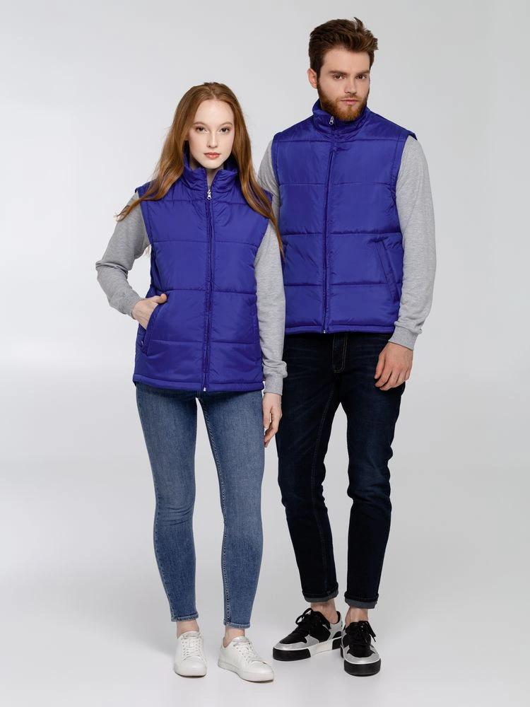Утепленный жилет унисекс. Воротник-стойкаЭргономичная линия низа - удлинение на спинкуДва наружных кармана на молнии и один внутренний на липучкеЗастежка-молния в тон жилетаДля удобства нанесения логотипа по низу спинки со стороны подкладки имеется техническая молнияРассчитана на температуру до +10 °С