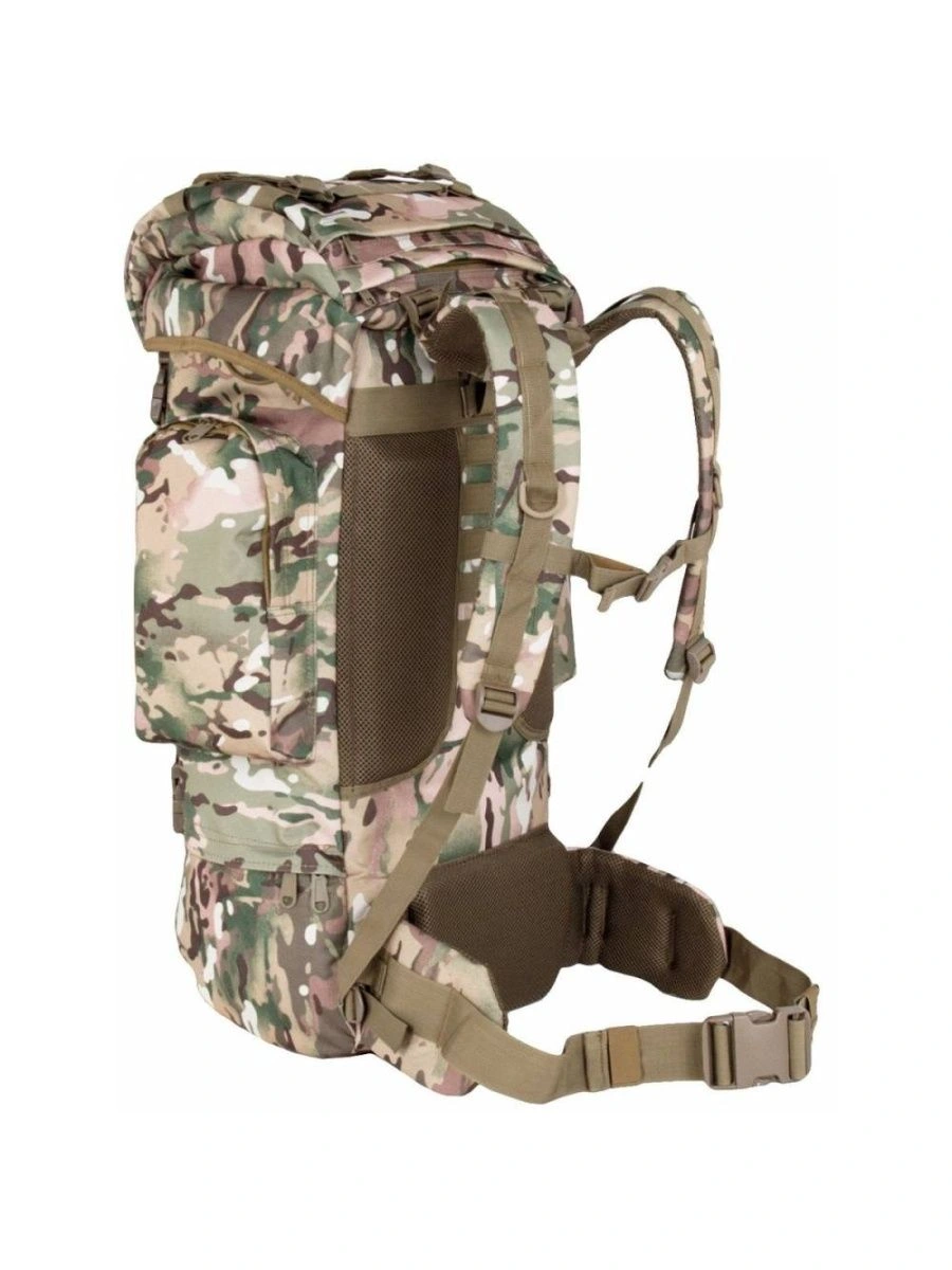 Мужской туристический спортивный рюкзак для активного отдыха, походов, спорта, охоты, рыбалки объемом 70 литров. Туристический каркасный рюкзак 70 литров отлично подходит для охоты и рыбалки, для дальних походов, сплавов, для активного отдыха, спорта, для горного и военного снаряжения, для туризма, для мобилизации. Тактический военный рюкзак объемом 70 литров отлично подходит для длительных военных спецопераций и туристических походов. Система V-1 состоящая из алюминиевой рамы уменьшает нагрузку на спину и делает комфортным длительные прохождения. Сверху рюкзака крышка чехол которая притягивается стропами. Под крышкой верхний вход в основное отделение на одной наружной тканевой затяжке и одной внутренней. Также в крышке имеется карман для небольшого дополнительного снаряжения. Основное отделение затягивается ремнями стяжками на фастексах вдоль всего рюкзака. Благодаря фронтальной U-образной молнии основное отделение можно раскрыть снизу и добраться до содержимого верхнего отделения . Два боковых кармана на молнии и один фронтальный. Система крепления дополнительного снаряжения стяжками снизу рюкзака, на фронтальной стороне и крышке. Наличие съемной каркасной системы подобно станковым рюкзакам. Каркас придает дополнительную жесткость спины и удобство пользования. Регулируемая подвесная система V-1 NEW (изменения высоты плечевых ремней-лямок) фиксируется при помощи ленты. Лямки широкие плотные с усиленными стропами вшитыми в спинку рюкзака. Спинка рюкзака и область поясницы имеют мягкие вентилируемые вставки Airmesh. Одна ручка сверху и одна снизу для переноски в руках как одному так и вдвоем. Поясной ремень с вентилируемыми вставками Airmesh и карманами по бокам. Данная модель отлично подойдет как молодым людям, предпочитающим покупать качественные, солидные вещи в стиле Милитари, так и туристам, охотникам, любителям экстремальных велопрогулок, ценящим надежность, быстрый доступ и комфорт в походах.